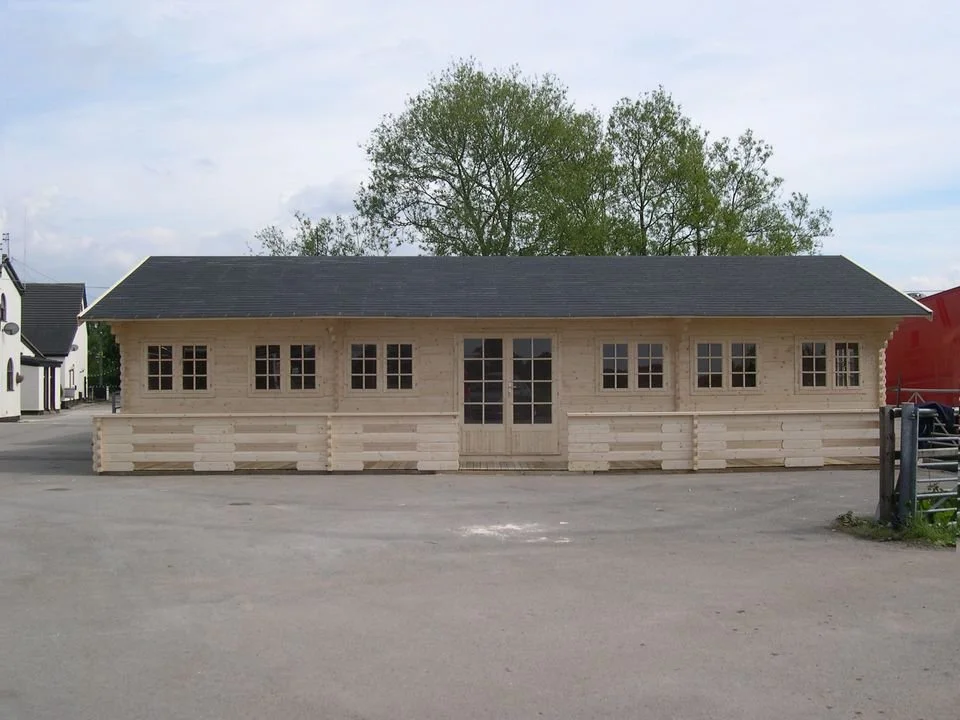 The Equestrian Centre’s apex roof log cabin with eaves canopy